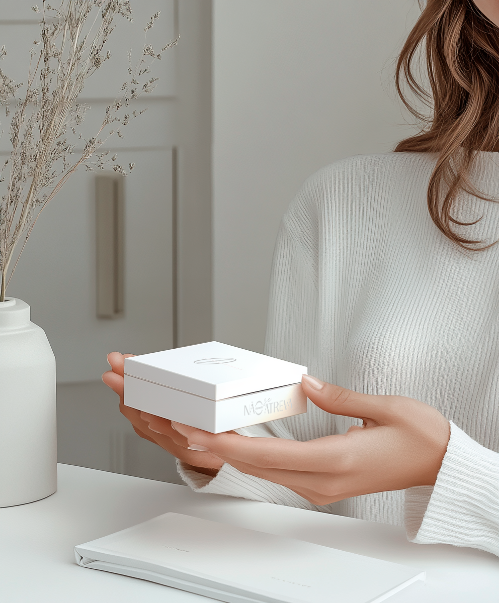 Cada pedido é entregue com nossa caixa desenvolvida com papel off-white texturizado e personalizada com os símbolos da marca Não se Atreva.
